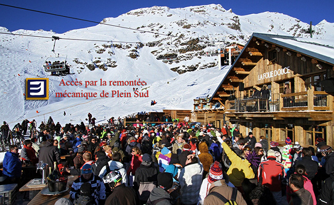 Accès au snowpark par la remontée de Moutière, à proximité du rond-point des pistes et de Eskiador Val Thorens.